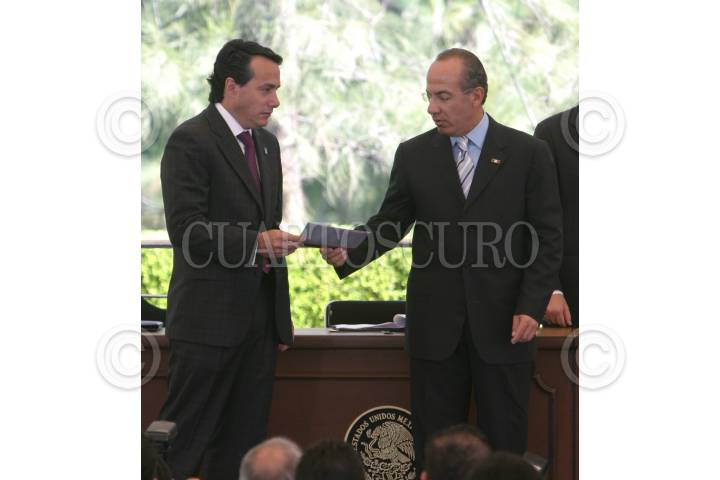 MÉXICO, D.F., 27ENERO2010.- Gerardo Ruíz Mateos, Secretario de Economía y Felipe Calderón Hinojosa, Presidente de México, encabezaron el evento Fortalecimiento de la Cadena "Mi Tortilla", en la residencia oficial de Los Pinos. FOTO: MOISÉS PABLO/CUARTOSCURO.COM