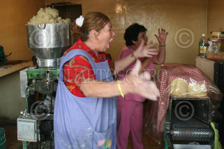 MEXICO D.F., 16 JUNIO2010.- Miles de personas observaron el partido de fútbol entre México y Francia desde sus negocios como lo hicieron las encargadas de una tortilleria en la avenida Centenario en la delegación Alvaro Obregón. FOTO: SAÚL LÓPEZ/CUARTOSCURO.COM