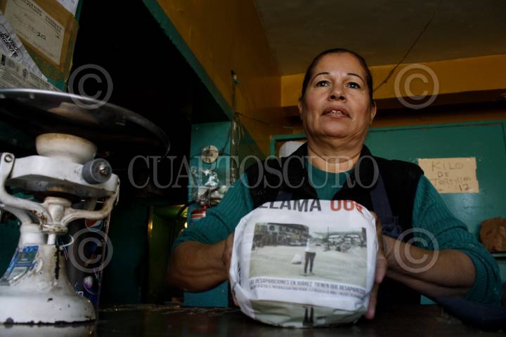 CIUDAD JUÁREZ, CHIHUAHUA, 13NOVIEMBRE2012.- En apoyo a la prevención de desaparición de mujeres, niñas y niños, las tortillerías locales utilizan papel con imágenes alusivas de la campaña “Las desapariciones en Juárez tiene que desaparecer” para envolver su producto. El Gobierno del Estado, en trabajo conjunto con el gobierno federal y municipal, a través de la Secretaría de Desarrollo Social y el Instituto Chihuahuense de la Mujer, entregó de manera gratuita este papel a 36 tortillerías, que se ubican dentro de las 20 colonias de alto riesgo para la mujer, de acuerdo a un estudio realizado por el Colegio de la Frontera. La finalidad es que las familias juarenses conozcan la importancia de realizar el reporte de desaparición de manera inmediata al 066, para ello se ha recurrido al uso de dípticos, cartelones y posters, la envoltura de un producto básico y de consumo diario como la tortilla, para que el mensaje principal llegue a la población objetivo. El contacto con estos negocios fue de manera directa, su disponibilidad para colaborar con la difusión de la campaña fue de manera inmediata y el material fue recibido con gran aceptación paran beneficio de la comunidad. Este papel concentra las imágenes alusivas de la campaña y la leyenda “Las desapariciones en Juárez tienen que desaparecer. Exige que se active el Protocolo Alba para ayudar a la búsqueda de niñas y mujeres desaparecidas. Llama al 066”. FOTO: NACHO RUÍZ /CUARTOSCURO.COM