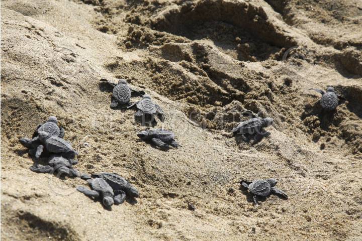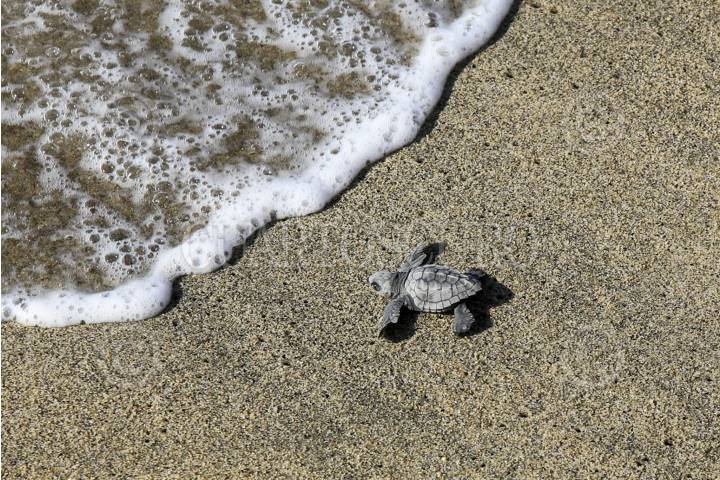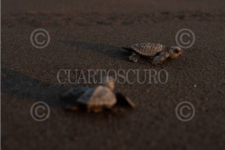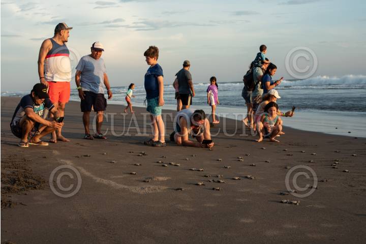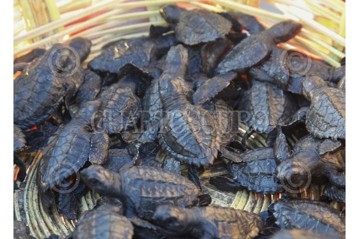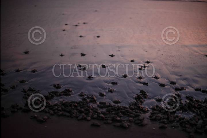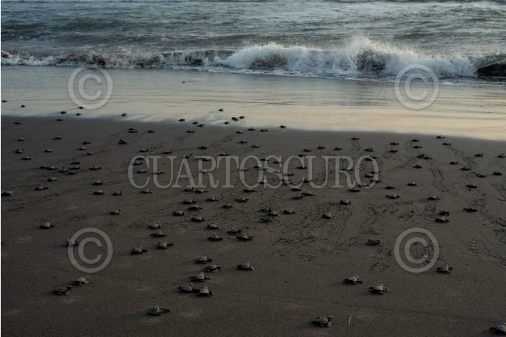 Liberación de pequeñas tortugas golfinas, que el Campamento Tortuguero de Playa Larga, en Acapulco.