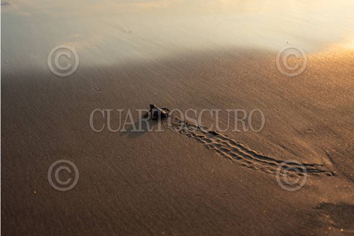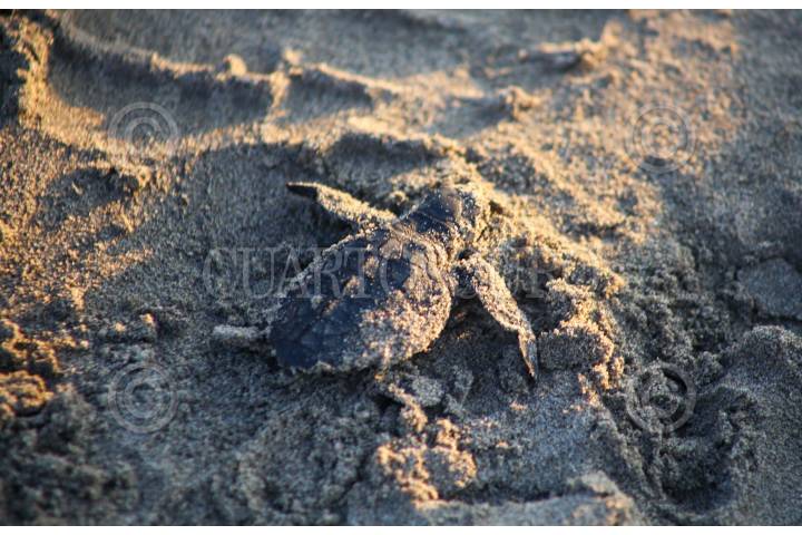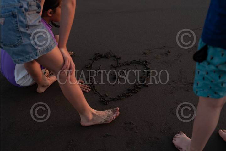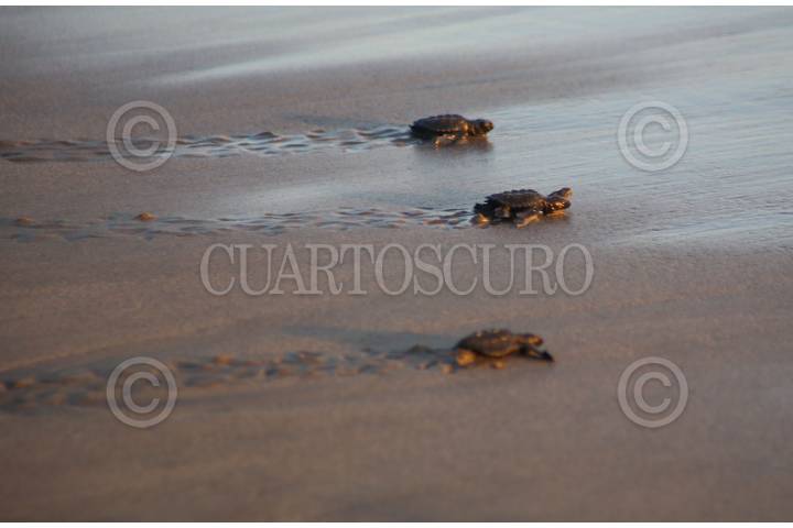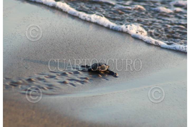 Un grupo de tortugas golfinas nació en la playa Condesa , las pequeñas tortugas fueron auxiliadas por un prestador de servicios turísticos, para que la mayoría llegarán al mar.