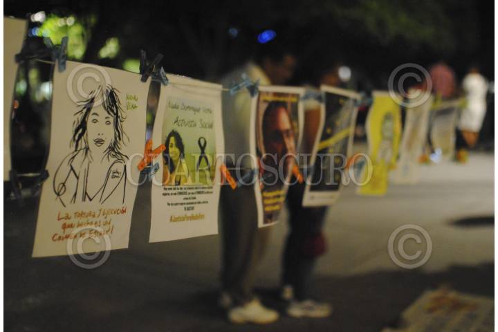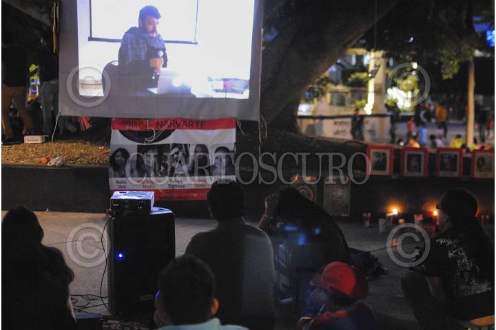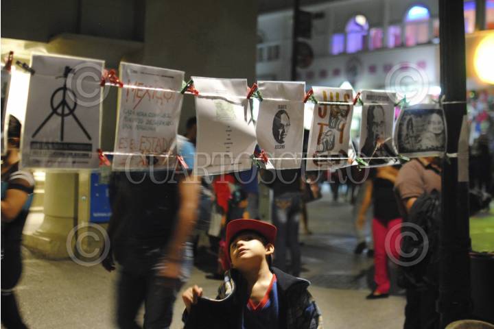CHILPANCINGO, GUERRERO, 16AGOSTO2015.- Jóvenes que pertenecieron al movimiento 132, colocaron un tendedero con imágenes informativas, proyectaron vídeos, colocaron veladoras y fotografías de las cuatro mujeres y el fotorreportero. exigieron el esclarecimiento del multihomicidio en la colonia Narvarte. La actividad tuvo lugar en el zócalo de esta ciudad bajo un árbol al que denominan “El árbol de la Dignidad”. FOTO: JOSÉ I. HERNÁNDEZ /CUARTOSCURO.COM