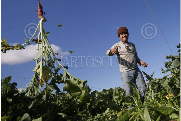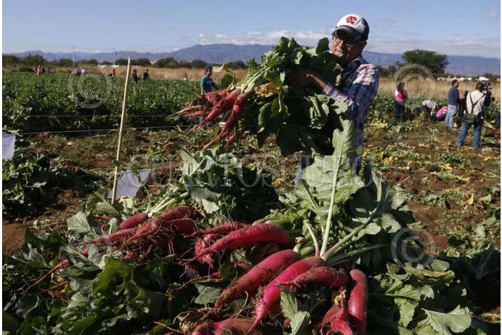 OAXACA, OAXACA, 19DICIEMBRE2015.- La mañana de este sábado hortelanos de la ciudad de Oaxaca y municipios conurbados cosecharon un aproximado de 15 toneladas de rábanos en sus variedades de champion y bartender, mismos que serán utilizados para la tradicional Noche de Rábanos a efectuarse el 23 de diciembre en el zócalo de la ciudad y en la que competirán 80 participantes en las diversas categorías, así como en totomoxtle y flor inmortal. FOTO: ARTURO PÉREZ ALFONSO /CUARTOSCURO.COM