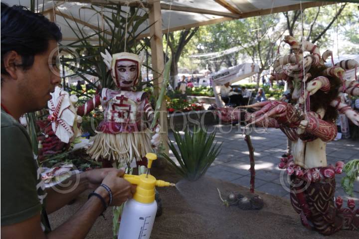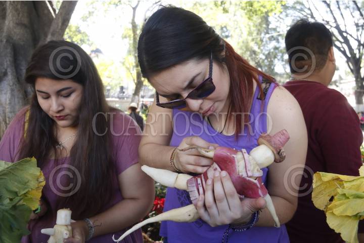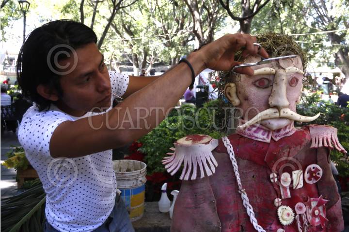 OAXACA, OAXACA, 23DICIEMBRE2015.- Como cada año, el 23 de diciembre se celebra en la ciudad de Oaxaca la tradicional Noche de Rábanos, festividad en la que distintos hortelanos realizan figuras con rábanos. En este año se montaron 80 stands y se dividió en las categorías tradicional y libre, además de que compitieron en totomoxtle y flor inmortal. Entre las figuras que se pueden observar se encuentra el busto del ex presidente, Porfirio Díaz Mori, el escudo nacional, así como diversas fiestas y tradiciones de la entidad. FOTO: ARTURO PÉREZ ALFONSO/ CUARTOSCURO.COM