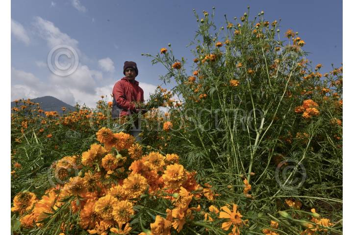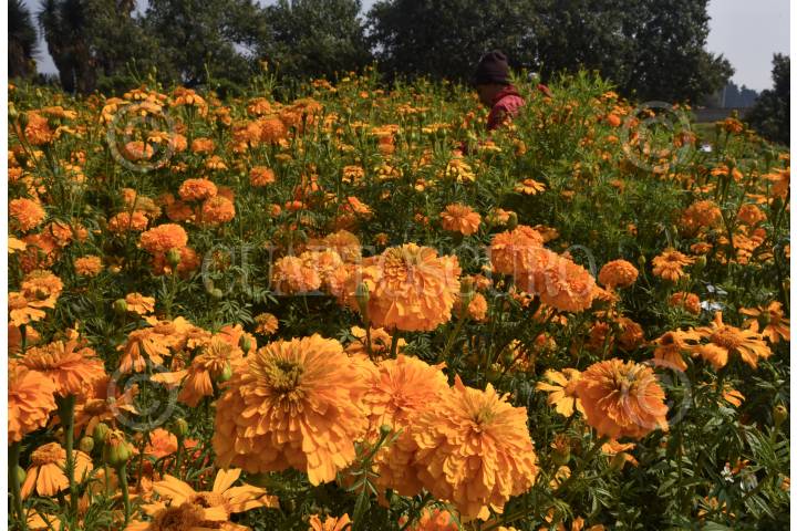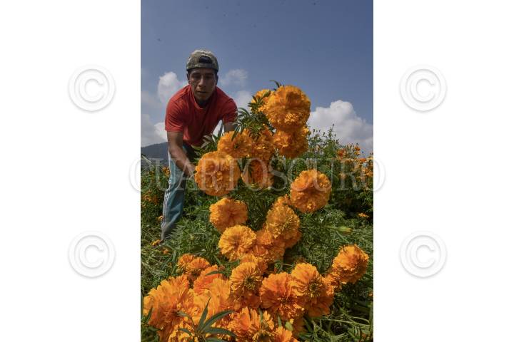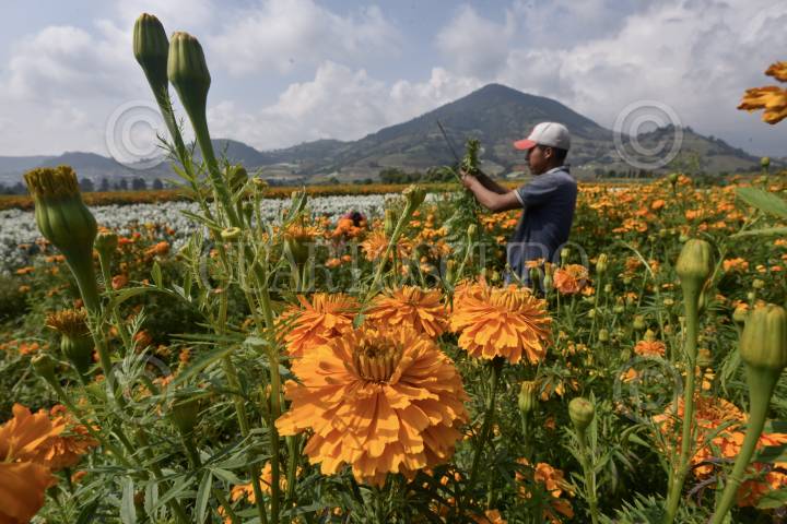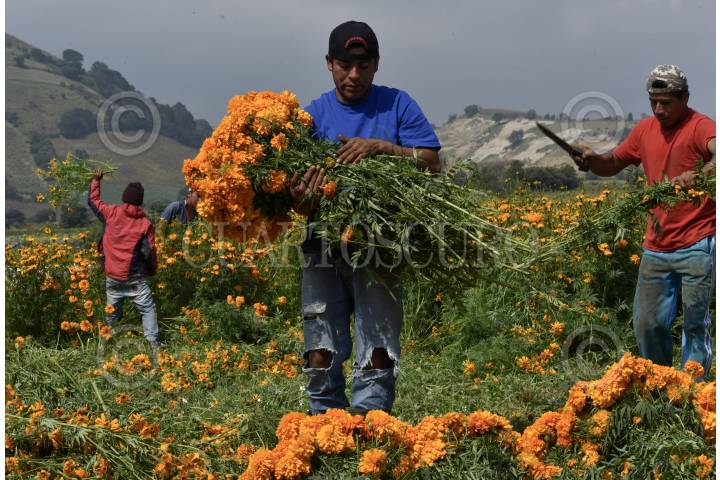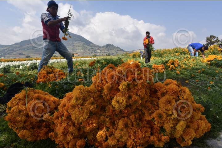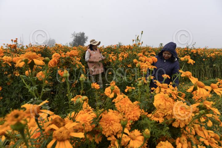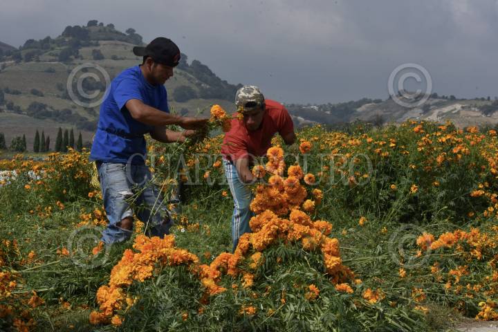 TENANGO DEL VALLE, ESTADO DE MÉXICO, 29OCTUBRE2019.- Desde temprana hora pobladores de San Francisco Putla en Tenango Del Valle acuden al campo a cortar flor de Cempasúchil utilizada en el festejo de Dia de Muertos, la flor es vendida en la localidad al igual que la llevan a la Central de Abastos de Toluca y de la Ciudad de México. Esta flor adornará las ofrendas y panteones en donde se acude a velar, elemento importante para este festejo. FOTO: CRISANTA ESPINOSA AGUILAR /CUARTOSCURO.COM