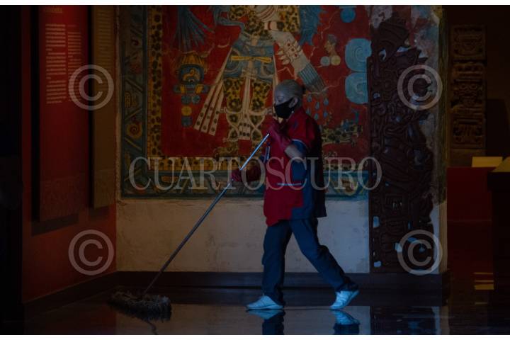 Una mujer trabaja en el Museo de Antropología que se reaperturo por segunda vez el día de hoy