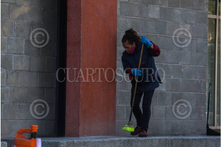 Un mujer de limpieza barre los pasillos de la Alameda Central