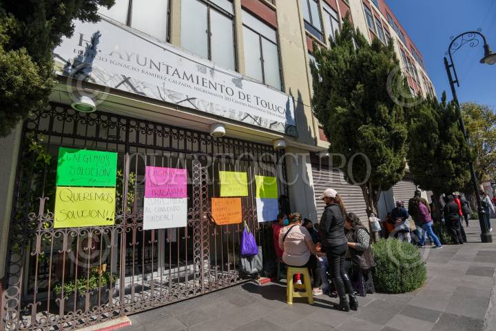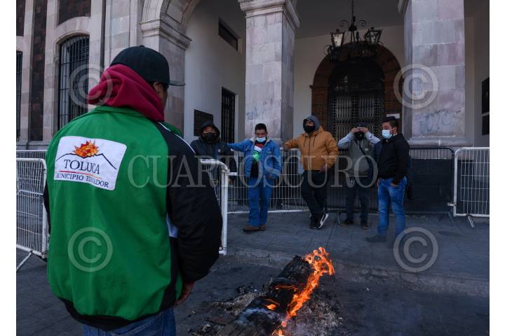Trabajadores del ayuntamiento de Toluca retomaron sus protestas ante la falta de pagos de quincenas atrasadas, aguinaldo y prima vacacional, a una semana de protestas solo algunos recibieron pagos pero continúan en la lucha de que a todos sea saldado el adeudo.
