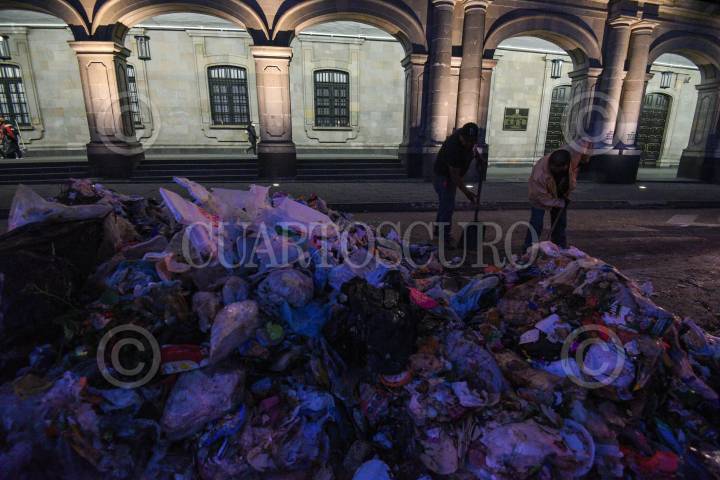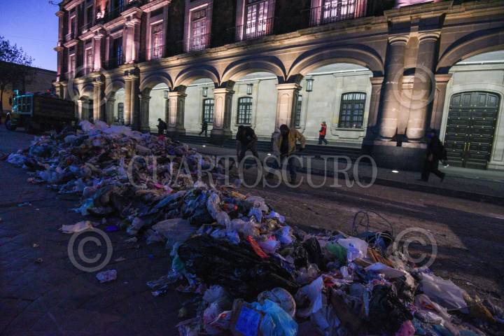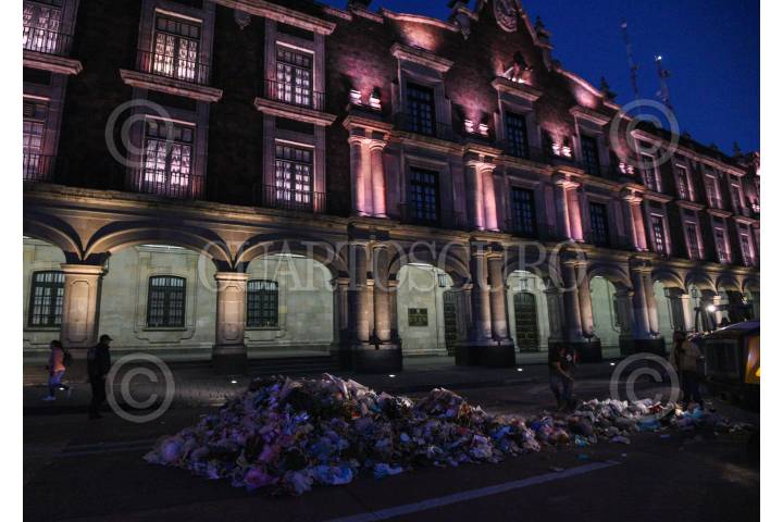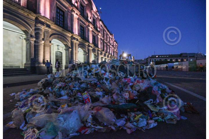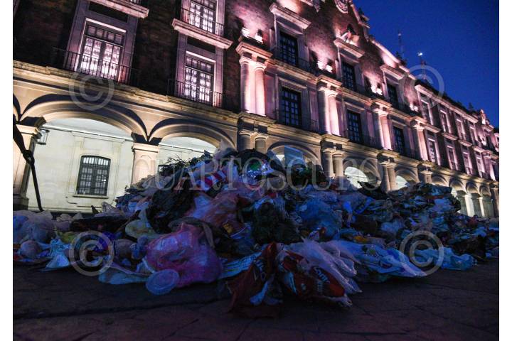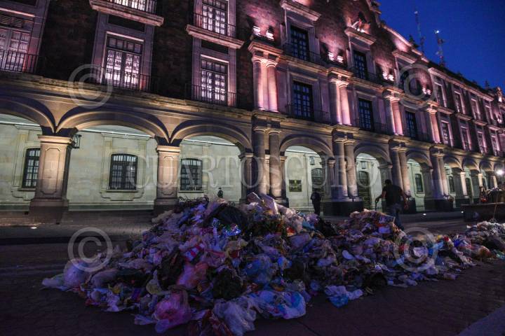 Cómo parte de las protestas de trabajadores del ayuntamiento de Toluca tiraron basura frente a Palacio de Gobierno así como en diversos puntos de acceso a la ciudad.