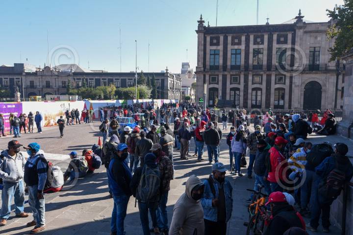 Trabajadores de Toluca continúan sus protestas en la capital mexiquense exigiendo el pago de quincenas atrasadas, aguinaldo y primas vacacionales por parte de la administración del alcalde Juan Rodolfo Sánchez Gómez.