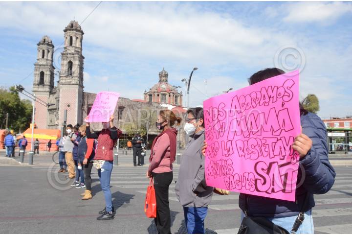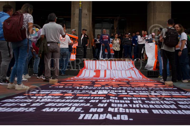 Trabajadores de limpieza que laboraban en el SAT bloquearon Reforma debido a que fueron despedidos injustamente, según denunciaron.