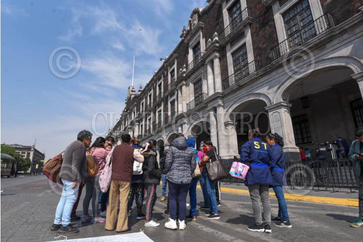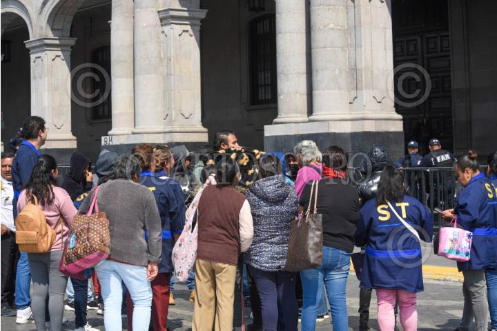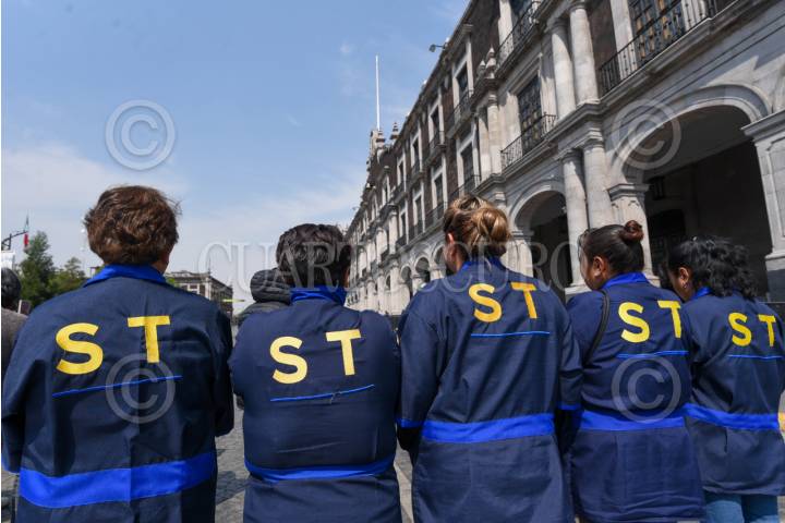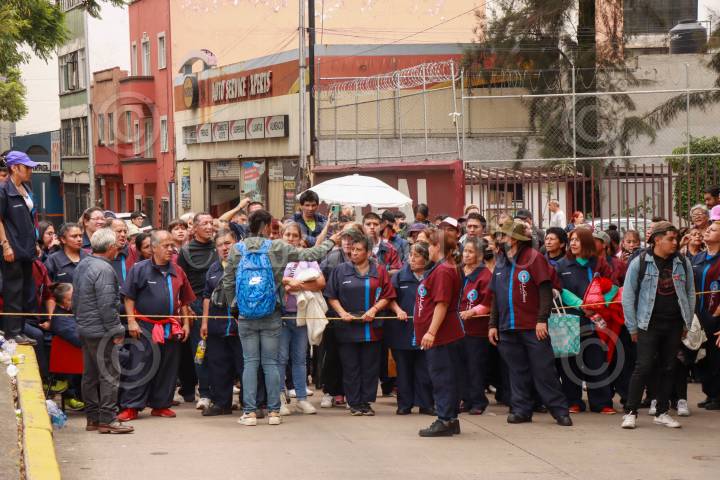 TOLUCA, ESTADO DE MÉXICO, 20MARZO2025.- Trabajadores de limpieza de la empresa Service and Industrial Tools se manifiestan frente a Palacio de Gobierno denunciando que no les han pagado su quincena, estos trabajadores laboran en distintos edificios del gobierno mexiquense a través de esta empresa de limpieza, denunciaron que no es la primera vez que les atrasa sus pagos además de carecer de seguro social y de ser amenazados por sus supervisores de correos si hacen públicos diversas irregularidades, piden la intervención de la Gobernadora Delfina Gómez Álvarez. FOTO: CRISANTA ESPINOSA AGUILAR /CUARTOSCURO.COM
