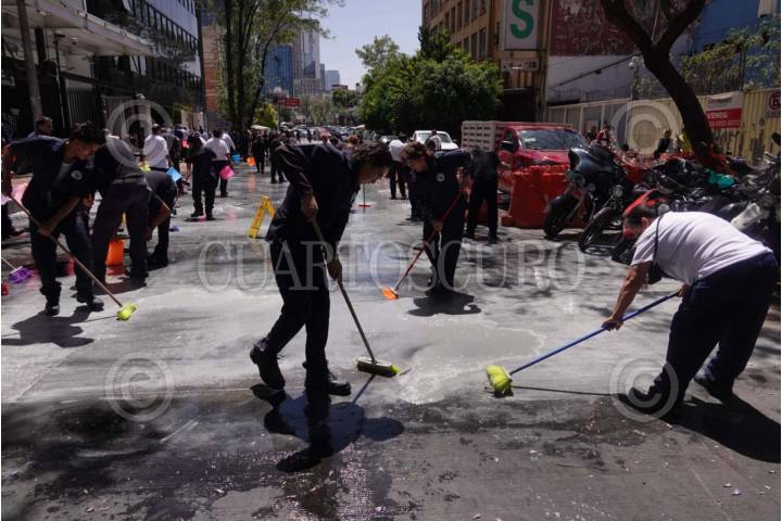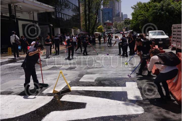 CIUDAD DE MÉXICO, 10ABRIL2025.- Trabajadores de limpieza del Senado de la República tallaron la exigencia de justicia de las madres buscadoras que realizaron una clausura simbólica de las inmediaciones de esta institución. FOTO: GRACIELA LÓPEZ/CUARTOSCURO.COM