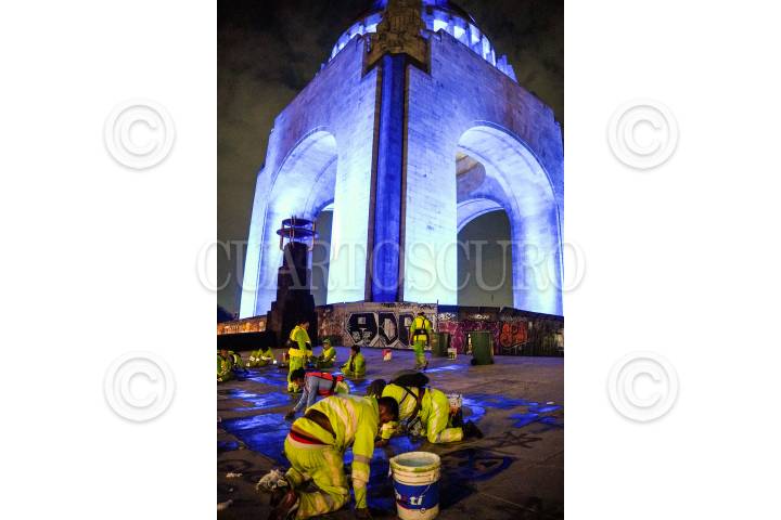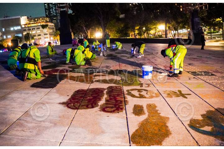 CIUDAD DE MÉXICO. 24OCTUBRE2023.- Trabajadores de limpia del Gobierno Capitalino realizan limpieza en la explanada del Monumento a la Revolución, ya que el fin de semana pasado se llevaron acabo diversas movilizaciones en la Ciudad. FOTO: ELIZABETH RUIZ/CUARTOSCURO.COM