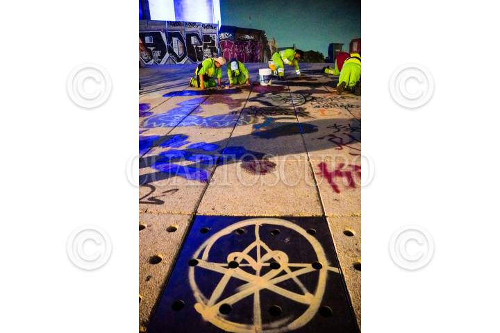 Limpieza de la avenida Anillo de Circunvalación luego de las celebraciones de Año Nuevo.