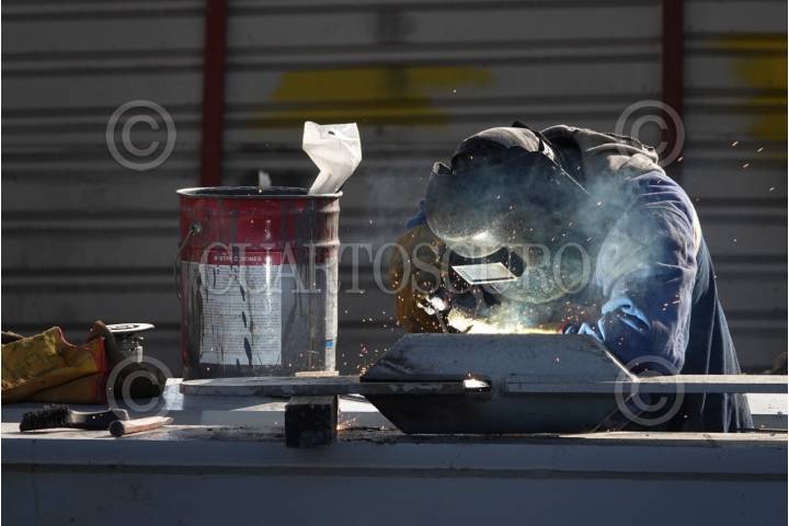 Trabajadores de obra continúan soldando y reforzando la nueva trabe de la estación del metro Olivos de la Línea 12, la cual sufrió un choque de trenes el pasado 3 de mayo del 2021