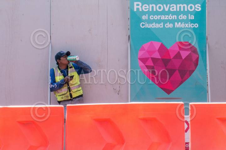 CIUDAD DE MÉXICO, 09JUNIO2017.- Un trabajador se refresca en los alrededores de las obras que comprenden la rehabilitación de la Plancha del Zócalo. FOTO: MARIO JASSO /CUARTOSCURO.COM