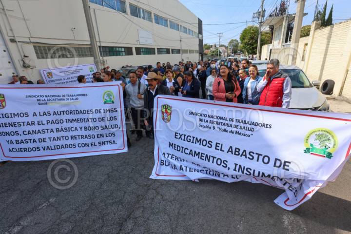 TOLUCA, ESTADO DE MÉXICO, 16JULIO2025.- Trabajadores del sector salud adscritos a la Jurisdicción Sanitaria número 2 de Toluca se fueron a paro laboral, son al menos 85 clínicas de cuatro municipios las que dejarán de dar servicio ante el incumplimiento en la transición IMSS-Bienestar, demandan el pago de bonos atrasados, falta de medicamentos, insumos y material de curación, entre otros. FOTO: CRISANTA ESPINOSA AGUILAR /CUARTOSCURO.COM