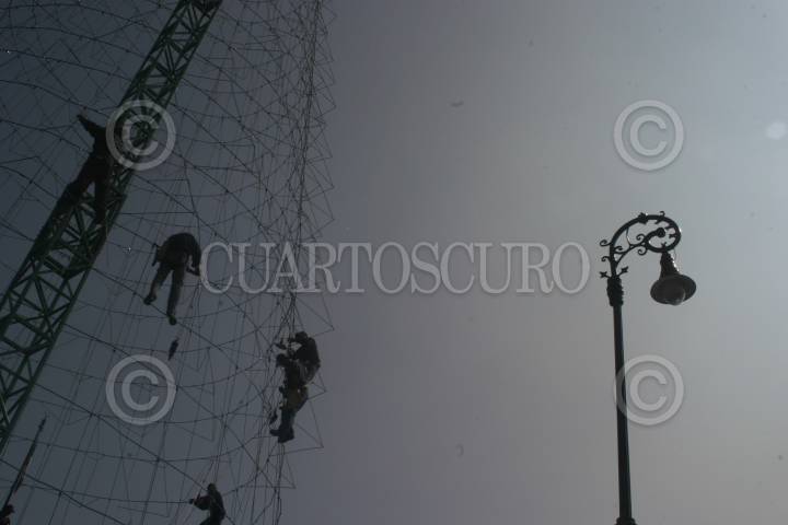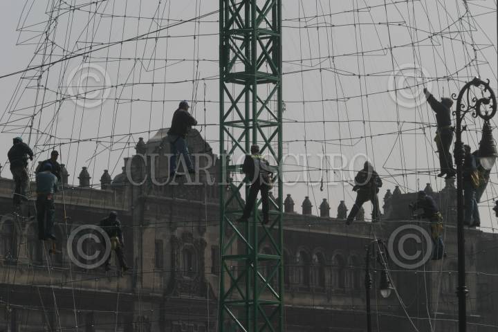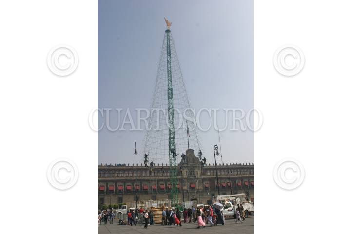 MÉXICO, D.F., 23NOVIEMBRE2008.- Trabajadores del Gobierno del Distrito Federal trabajan en colocar un árbol gigante de navidad, en la plancha del Zócalo Capitalino. FOTO: SÁSHENKA GUTIÉRREZ/CUARTOSCURO.COM