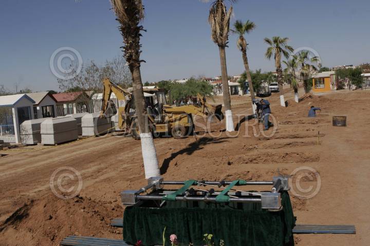 HERMOSILLO, SONORA 07 DE JUNIO DEL 2009.- Trabajadores del panteón municipal trabajan para hacer las fosas donde serán enterrados algunos de los 41 niños que han muerto luego de que se incendiara una guardería en el centro de la ciudad. FOTO: IVAN STEPHENS/CUARTOSCURO.COM