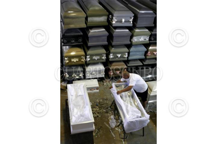 HERMOSILLO, SONORA 07JUNIO 2009.- Trabajadores de la empresa Ataúdes Laminados S. A. de C. V. trabajan horas extras para dar abasto a los pedidos de ataúdes que han hecho las funerarias luego de que se registrara un incendio en el que han perdido la vida 41 niños. FOTO: IVAN STEPHENS/CUARTOSCURO.COM