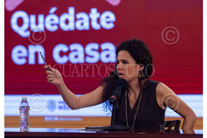 Luisa María Alcalde Luján, secretaria del Trabajo, durante la conferencia de Programas de Bienestar