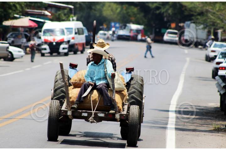 Un campesino maneja su tractor arando su parcela en Ticuman, al frente pasa un quebrantahuesos.