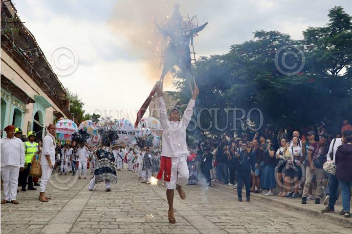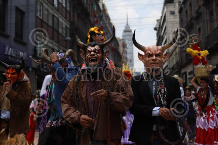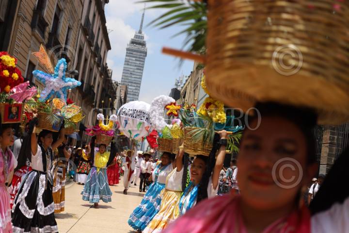 CIUDAD DE MÉXICO, 24AGOSTO2025.- La calenda integrada por los pueblos originarios de Oaxaca avanzó por la Calle de Madero para llegar al Zócalo capitalino. FOTO: DANIEL AUGUSTO / CUARTOSCURO.COM