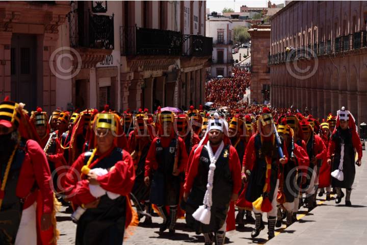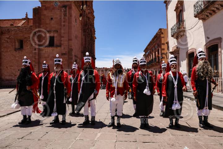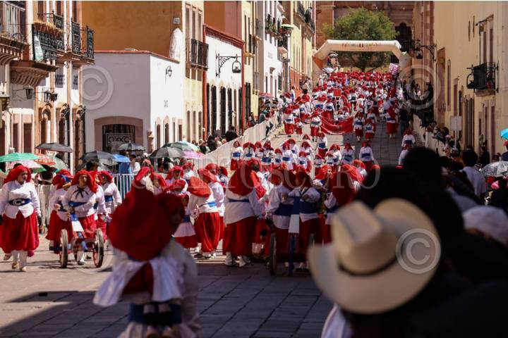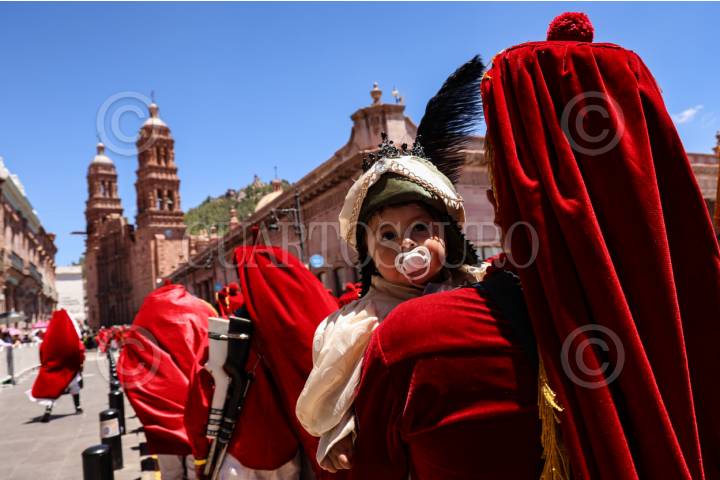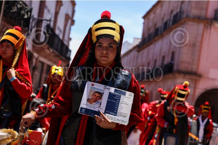 ZACATECAS, ZACATECAS, 31AGOSTO2025.- Con 17 mil 600 participantes, las Morismas de Bracho lograron el nuevo Récord Guiness, en la puesta en escena con más participantes a nivel mundial. Desde las nueve de la mañana las calles del centro histórico fue el escenario para que cada morismero fuera contado por los jueces, durante la marcha de los batallones Cristian y Moro, previo a los enfrentamientos a las faldas del cerro de Bracho. FOTO: ADOLFO VLADIMIR/ CURTOSCURO.COM