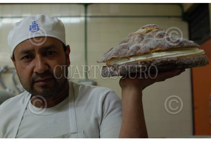MÉXICO, D.F., 01NOVIEMBRE2014.- El maestro panadero Dionisio, segunda generación familiar dedicada al oficio de la panadería. La panadería La Vasconia, fundada en 1870, es considerada la más antigua de la ciudad. El equipo de panaderos, comandado por el maestro Dionisio quien se dedica al oficio desde hace 30 años, trabaja desde ayer y hasta hoy en la madrugada para sacar los pedidos de pan de muerto solicitados por la centena de clientes en estas fechas de Día de Muertos. A una temperatura de 210 grados, centígrados las decenas de charolas de pan de muerto se hornear en promedio de 30 minutos. Levadura, esencia de azahar, mantequilla, manteca, huevos, harina, leche y azúcar son los ingredientes de esta tradicional receta. El proceso de elaboración del pan es casi artesanal, excepto por la utilización de la batidora y revolvedora. FOTO: MARÍA JOSÉ MARTÍNEZ /CUARTOSCURO.COM
