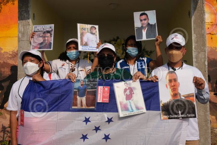 Integrantes de la Caravana de Madres de Migrantes desaparecidos y desaparecidas en territorio mexicano realizaron una ofrenda florar en la llamada curva del migrante, lugar donde perdieron la vida 56 personas al volcar el trailer donde los trasladaban.