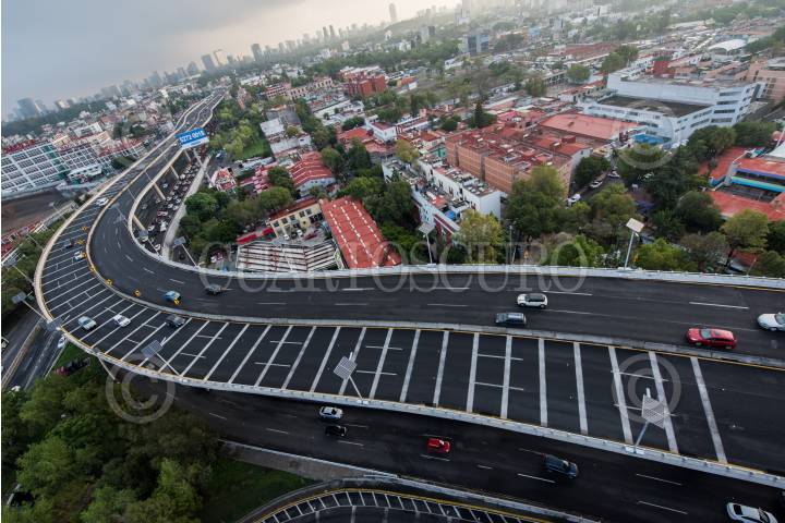 CIUDAD DE MÉXICO, 11AGOSTO2018.- Vista aérea de la circulación vehicular sobre el primer y segundo piso del anillo Periférico a la altura de Tacubaya. FOTO: DIEGO SIMÓN SÁNCHEZ /CUARTOSCURO.COM