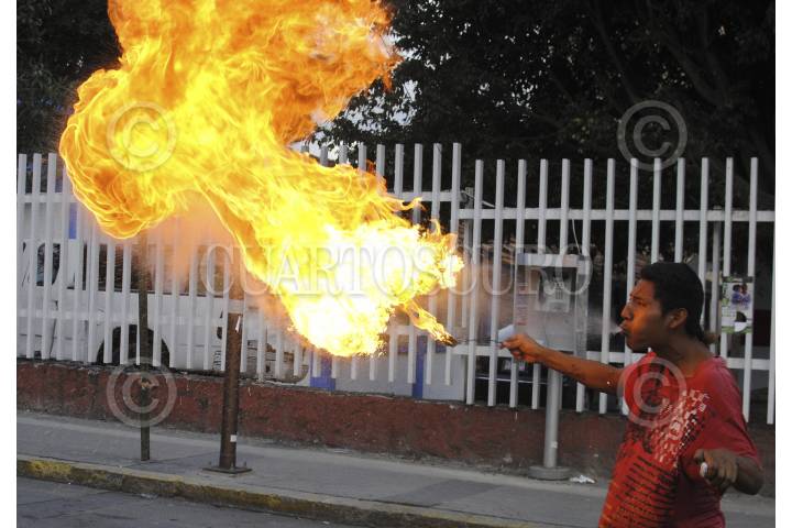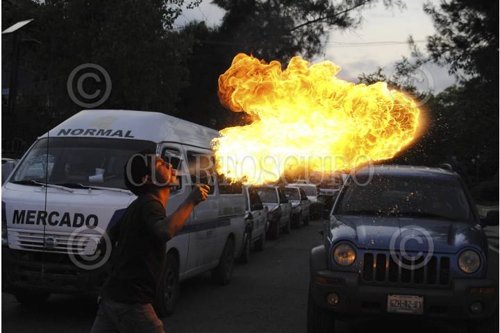 OAXACA, OAXACA, 27ABRIL2015.- Un joven tragafuegos labora en el crucero del Instituto Estatal de Educación Pública (IEEPO) para recaudar dinero para poder sobrevivir. FOTO: ARTURO PÉREZ ALFONSO /CUARTOSCURO.COM