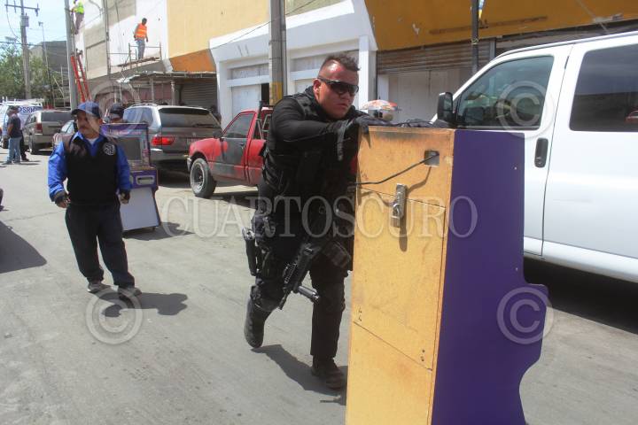 CIUDAD JUÁREZ, CHIHUAHUA, 15JUNIO2017.- Elementos de la PGR y Policía Estatal realizaron un operativo en el Centro de Juárez para decomisar maquinas "tragamonedas" como parte de investigaciones contra al ley de Juegos y Sorteos. FOTO: NACHO RUIZ /CUARTOSCURO.COM