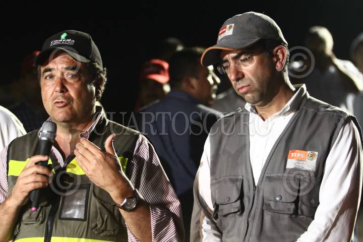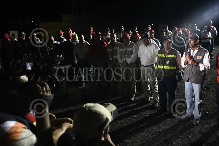 SABINAS, COAHUILA, 09MAYO2011.- Durante la madrugada de hoy, fue encontrado el último minero atrapado en la mina de carbón en el Ejido Sabinas tras la explosión que sepultó a los trabajadores la semana pasada. En conferencia con los medios de comunicación el Secretario del Trabajo Javier Lozano Alarcón junto con el gobernador de Coahuila Jorge Torres, oficializaron la conclusión de los trabajados del rescate y anunciaron que ningún atrapado se encontró con vida. Familiares del último minero encontrado se tornaron en llanto tras la noticia. FOTO: SAÚL LÓPEZ/CUARTOSCURO.COM
