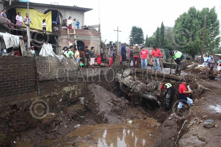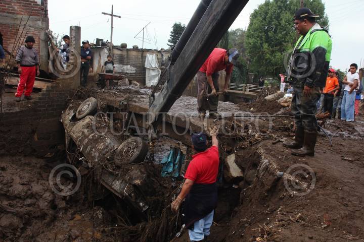 CHALCO, ESTAOD DE MÉXICO, 07JULIO2011.- Nuevamente el municipio de Chalco se vio afectado tras la intensa lluvia que azotó la zona oriente la noche de ayer y que dejo a parte de la comunidad de Santa Maria Huexoculco inundada afectando viviendas y automóviles tras el desbordamiento del canal de gras negras . FOTO: SAÚL LOPEZ/CUARTOSCURO.COM