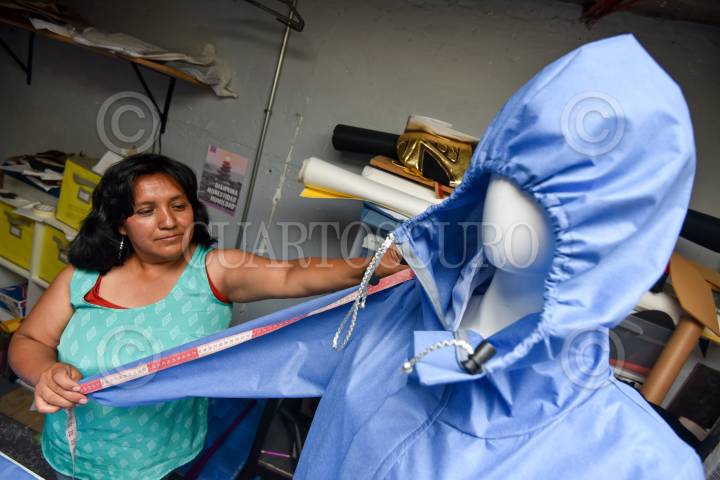 La tienda de disfraces Party Zone dejó de coser disfraces para confeccionar cubrebocas y trajes de pellón quirúrgico durante la contingencia por COVID-19.