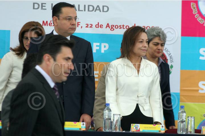 MÉXICO, D.F. 22AGOSTO2007.- Josefina Vasquez Mota, secretaria de educación y Germán Martínez Cázares, secretario de la Función Pública presentaron el programa "Adios a las trampas" que se llevó a cabo en el Alcazar del Castillo de Chapultepec. Fernando González, subsecretario de educación básica, estuvo presente. FOTO: PAOLA HIDALGO/CUARTOSCURO.COM