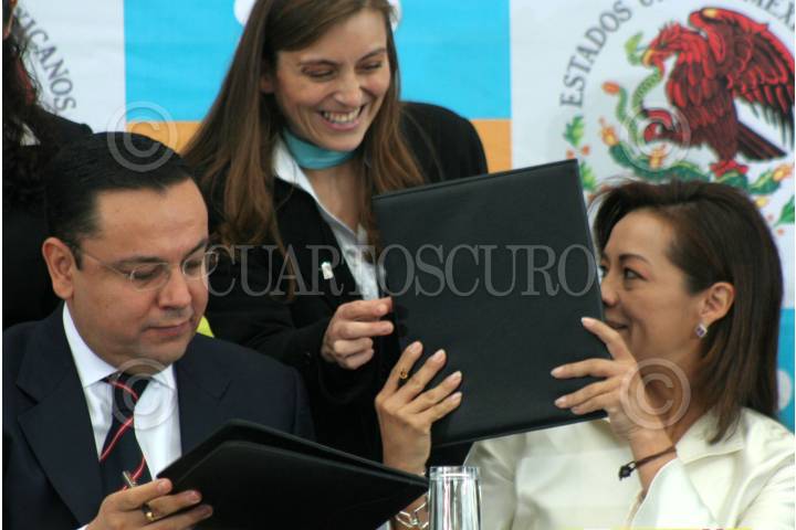 MÉXICO, D.F. 22AGOSTO2007.- Josefina Vasquez Mota, secretaria de educación y Germán Martínez Cázares, secretario de la Función Pública presentaron el programa "Adios a las trampas" que se llevó a cabo en elAlcazar del Castillo de Chapultepec. FOTO: PAOLA HIDALGO/CUARTOSCURO.COM