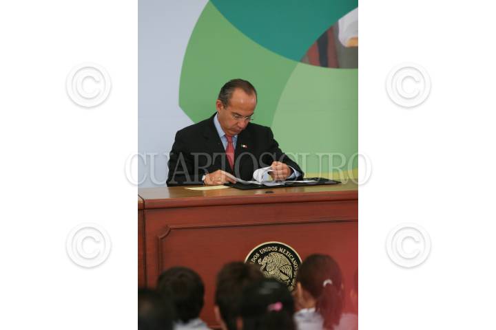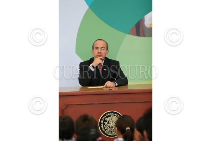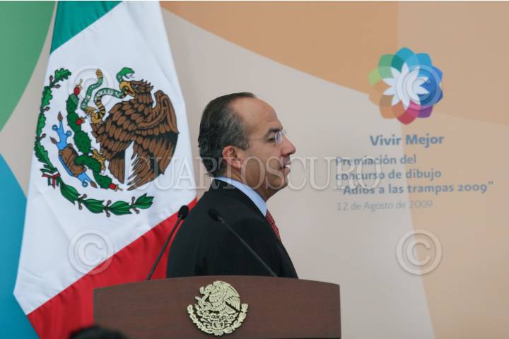 MÉXICO D.F., 12AGOSTO2009.- Felipe Calderón Hinojosa, Presidente de México, durante la ceremonia en la cual fueron entregados los premios del “Concurso de Dibujo Adiós a las Trampas” esto en el Salón Alcazar del Castillo de Chapultepec. FOTO: GUILLERMO PEREA /CUARTOSCURO.COM