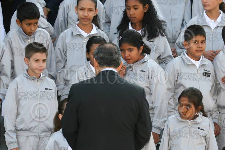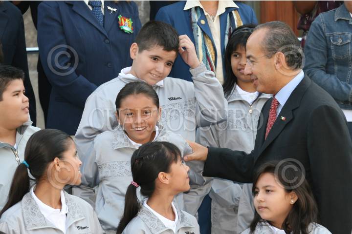 MÉXICO D.F., 12AGOSTO2009.- Felipe Calderón Hinojosa, Presidente de México, al termino de la ceremonia en la cual fueron entregados los premios del “Concurso de Dibujo Adiós a las Trampas” saludo a los estudiantes y maestros después de la foto oficial, esto en el Salón Alcazar del Castillo de Chapultepec. FOTO: GUILLERMO PEREA /CUARTOSCURO.COM