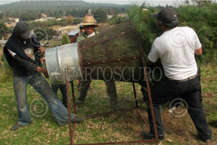 MÉXICO, D.F., 18NOVIEMBRE2009.- Trabajadores dedicados a la siembra y venta de arboles naturales para estas épocas decembrinas, dieron inicio con esta actividad en los parajes del Ajusco, al sur de la ciudad. FOTO: ENRIQUE ORDÓÑEZ/CUARTOSCURO.COMA