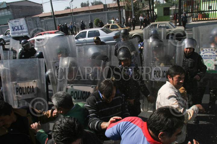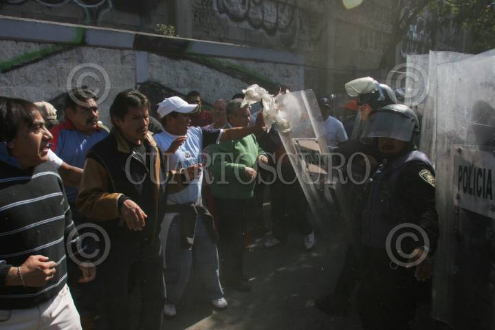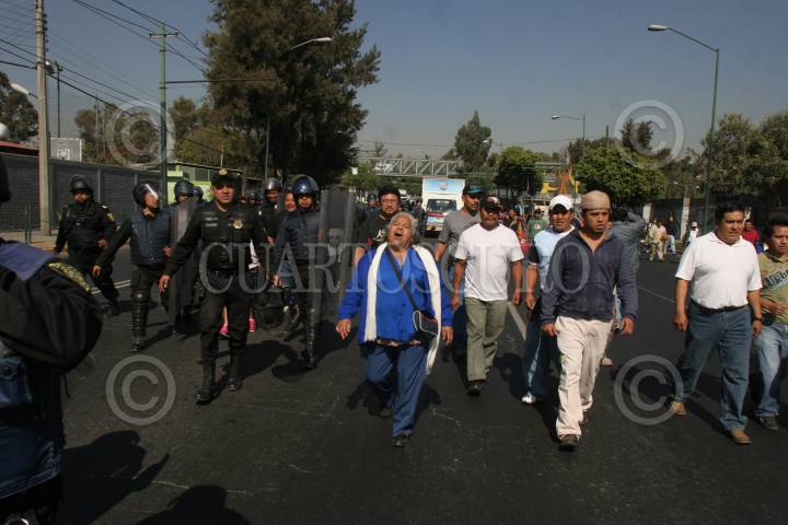 MÉXICO, D.F., 05ENERO2011.- Granaderos de la Secretaria de Seguridad Pública del Distrito Federal, quitaron a trabajadores de la delegación Iztapalapa que bloquearon el eje 6 Oriente y Churubusco debido a que no han recibido bonos y pagos del 2010 . FOTO: SAÚL LÓPEZ/CUARTOSCURO.COM