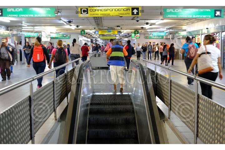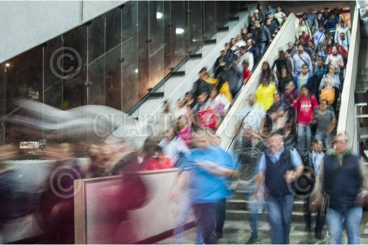 CIUDAD DE MÉXICO, 28FEBRERO2016.- Personas suben por la escalera electrica del transbordo del metro Chabacano que conecta la línea café con la azul. FOTO: DIEGO SIMÓN SÁNCHEZ /CUARTOSCURO.COM