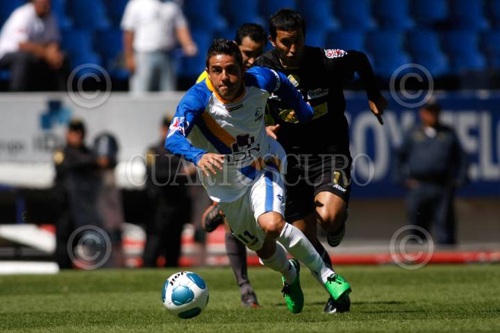 PUEBLA, PUEBLA, 24ENERO2010.- Los Lobos de la BUAP vencieron un gol por cero al equipo de Dorados de Sinaloa. Durante el transcurso del segundo tiempo, la anotación que propició el triunfo a la jauría universitaria tuvo presencia en el estadio Cuauhtémoc en la jornada 3 del torneo Bicentenario 2010 de la liga de ascenso. FOTO: FRANCISCO GUASCO/CUARTOSCURO.COM