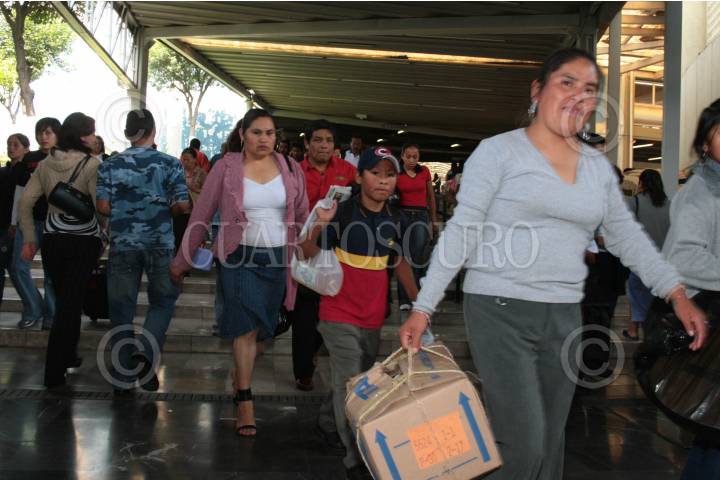 MÉXICO, D.F.15ABRIL2007.-La llegada y salida de vacacionistas en la TAPO, ha sido menor en el transcurso del día; no obstante, continuan el flujo de personas, terminado con el periodo vacacional de Semana Santa. FOTO JEFTÉ ARGUELLO/CUARTOSCURO.COM