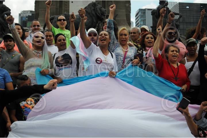CIUDAD DE MÉXICO, 21JULIO2024. - El pasado miércoles se aprobó en el congreso capitalino la Ley Paola Buenrostro, la cual tipifica como delito el transfeminicidio, este domino, integrantes de la comunidad LGBTTTI, celebraron dicha aprobación. FOTO: DANIEL AUGUSTO /CUARTOSCURO.COM