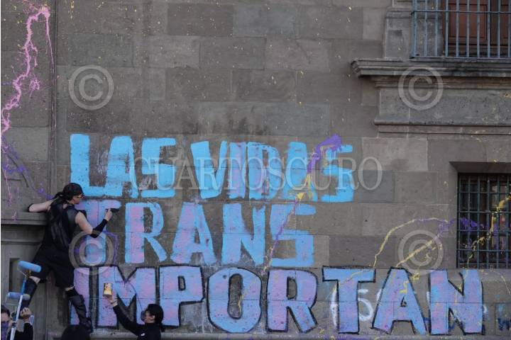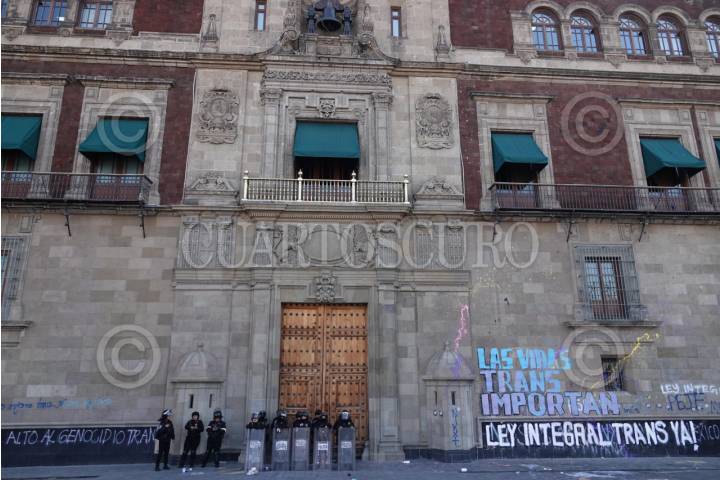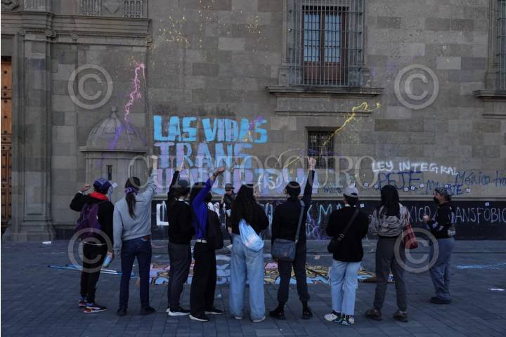 CIUDAD DE MÉXICO, 15ENERO2024.- Integrantes de la comunidad LGBTQIA+ se manifestaron en Palacio Nacional para exigir justicia por los transfeminicidios ocurridos en lo que va del año, así como por los comentarios transfóbicos por parte del presidente Andrés Manuel López Obrador. FOTO: GRACIELA LÓPEZ /CUARTOSCURO.COM