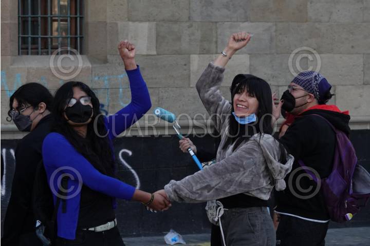 CIUDAD DE MÉXICO, 15ENERO2024.- La activista Victoria Samano gritó para exigir justicia por los transfeminicidios ocurridos en el país afuera de Palacio Nacional, en donde acompañada de un contingente de la comunidad LGBT+ pintaron la fachada. FOTO: GRACIELA LÓPEZ /CUARTOSCURO.COM