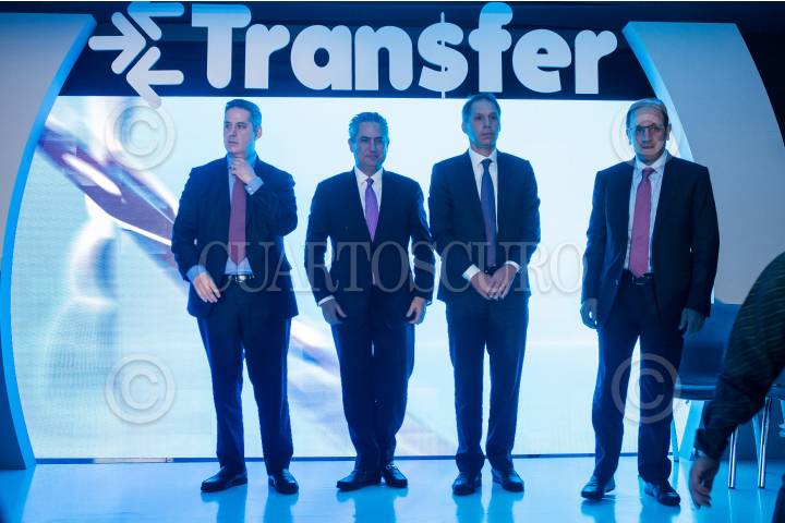 CIUDAD DE MÉXICO, 12SEPTIEMBRE2017.- Antonio Magaña, director de Transfer, Ernesto Torres Cantú, director general de Citibanamex, Daniel Hajj Aboumrad, director de América Móvil, y Marco Antonio, director de Grupo Financiero Inbursa, durante la conferencia por el quinto aniversario de aplicación Transfer. FOTO: ISAAC ESQUIVEL /CUARTOSCURO.COM